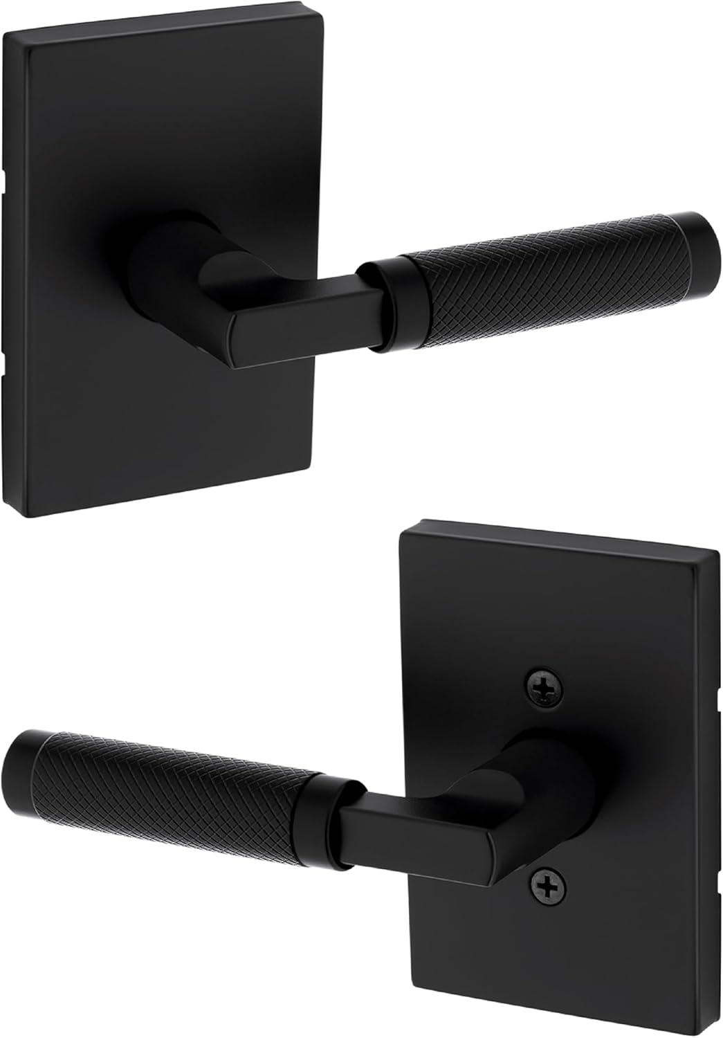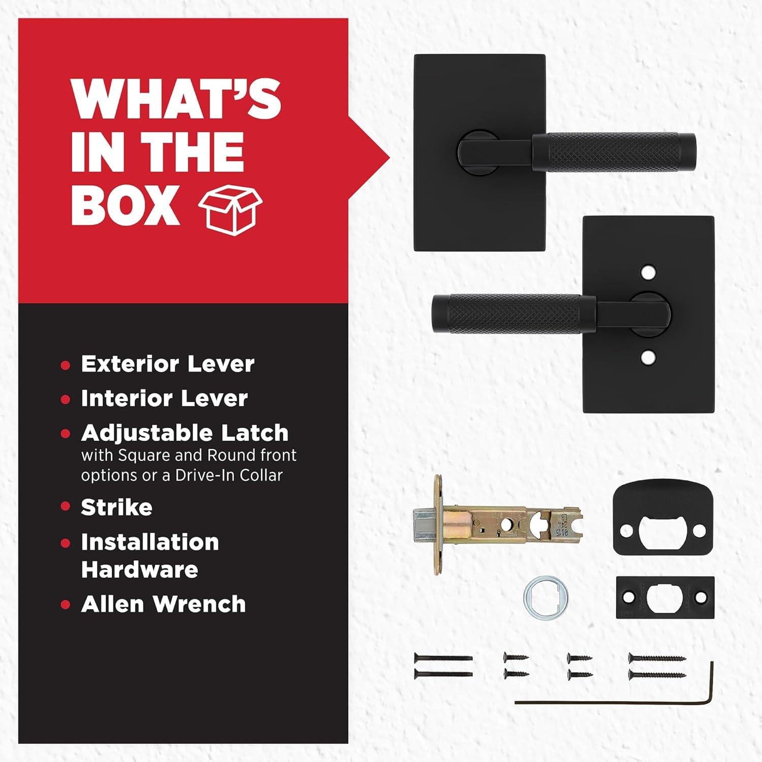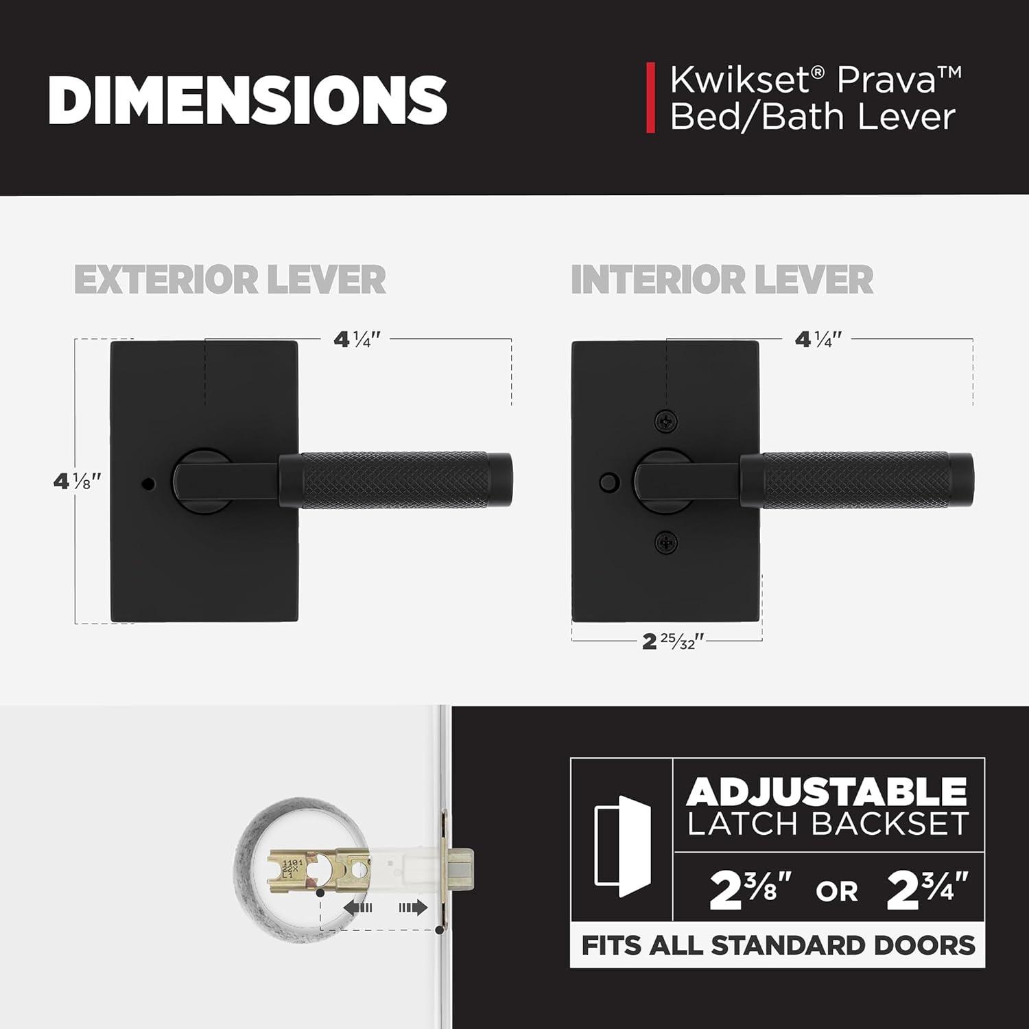 Kwikset Prava Entry Door Knurled Handle with Lock and Key, Secure Keyed Reversible Lever Exterior, for Front Entrance and Bedrooms, Satin Brass, Pick Resistant Smartkey Rekey Security and Microban(Matte Black)