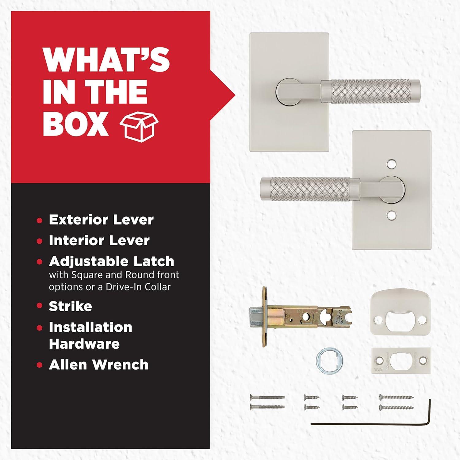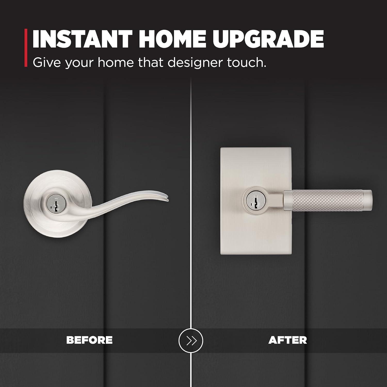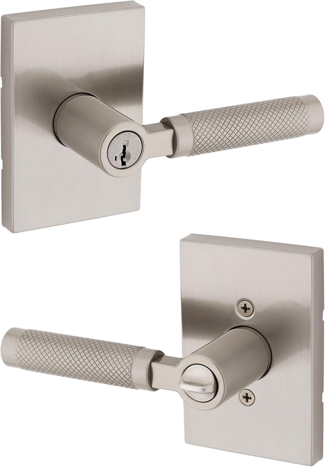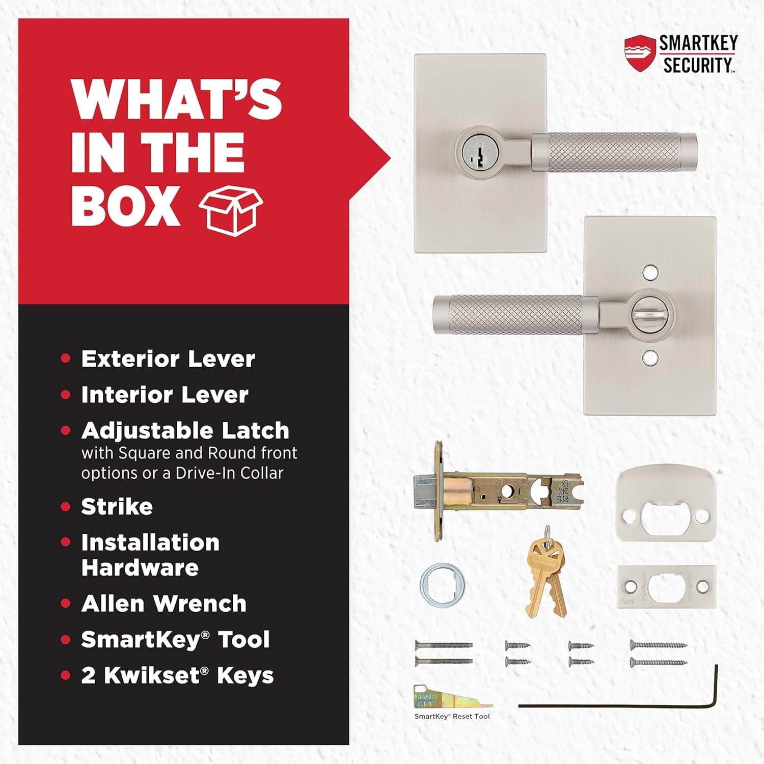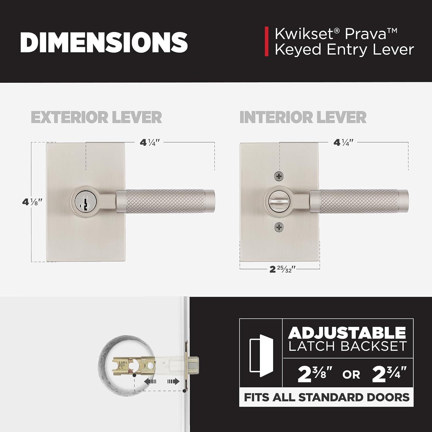 Kwikset Prava Entry Door Knurled Handle with Lock and Key, Secure Keyed Reversible Lever Exterior, for Front Entrance and Bedrooms, Satin Brass, Pick Resistant Smartkey Rekey Security and Microban(Satin Nickel)