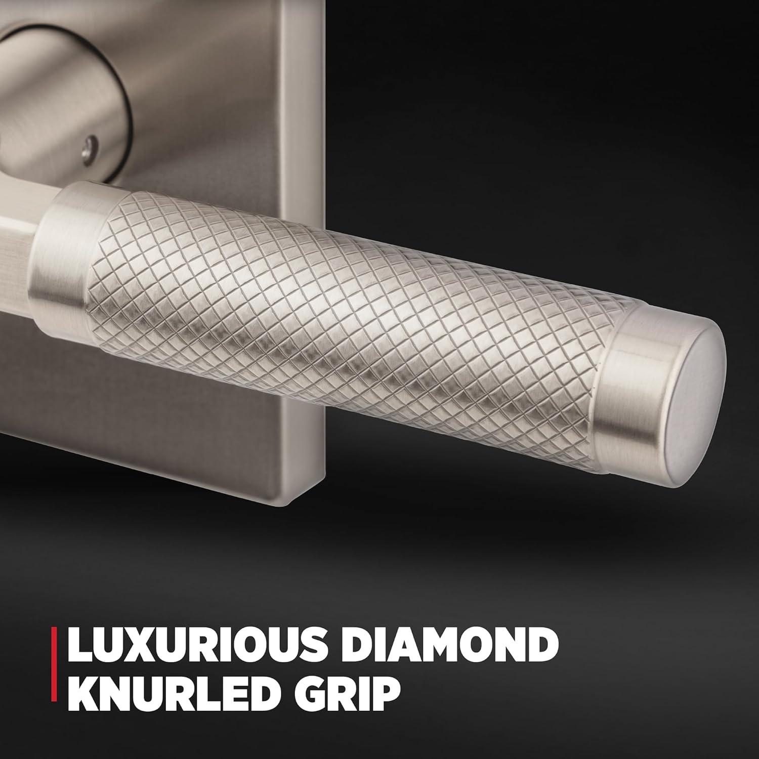 KNURLED HANDLE: Handle features diamond knurling for a luxurious look in your home. The unique texture provides a firm, comfortable grip when you open or close the door