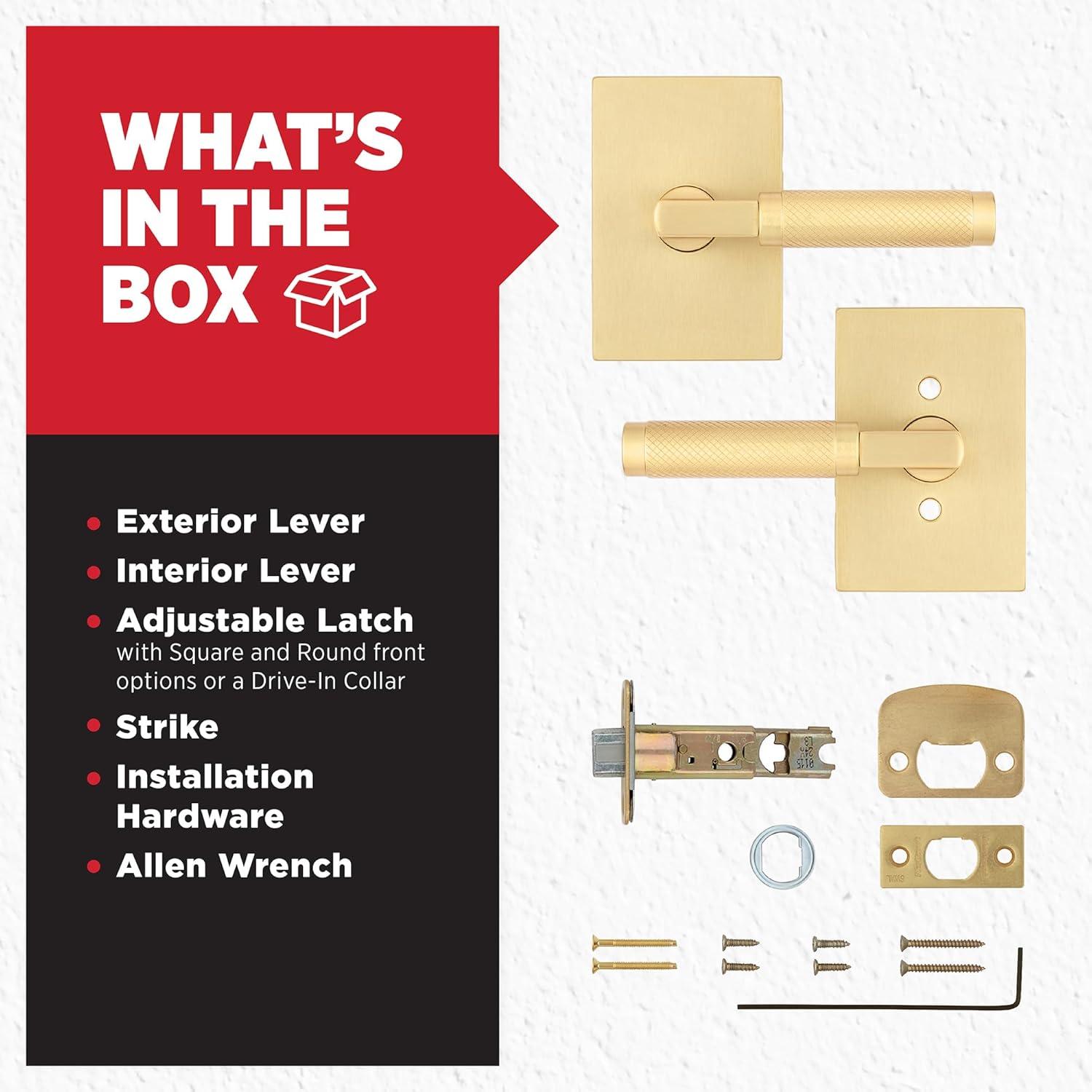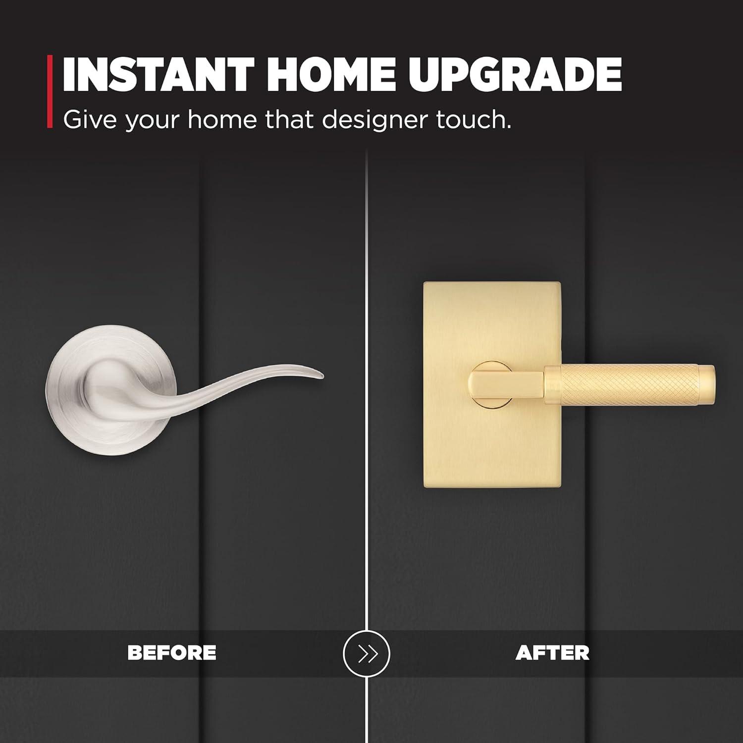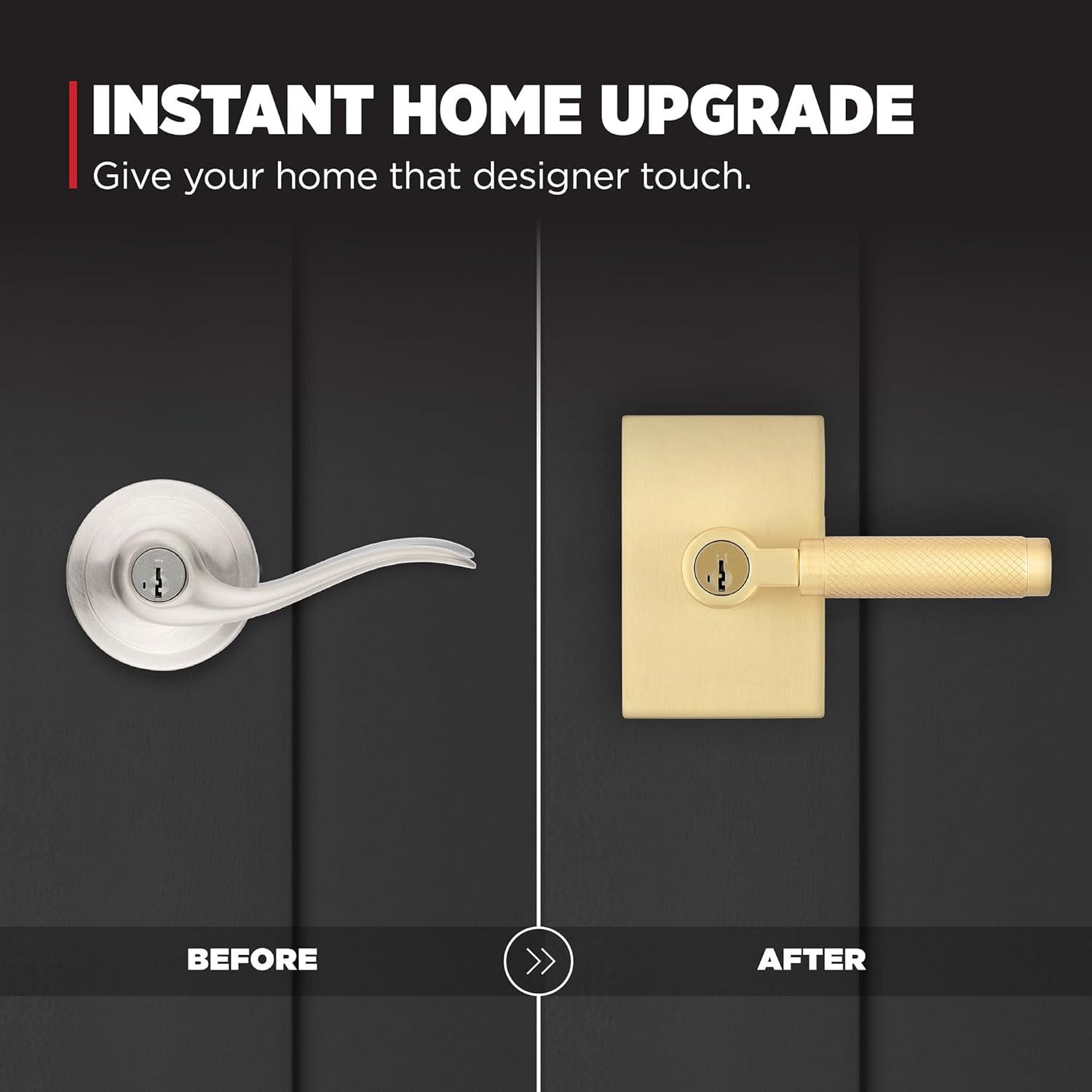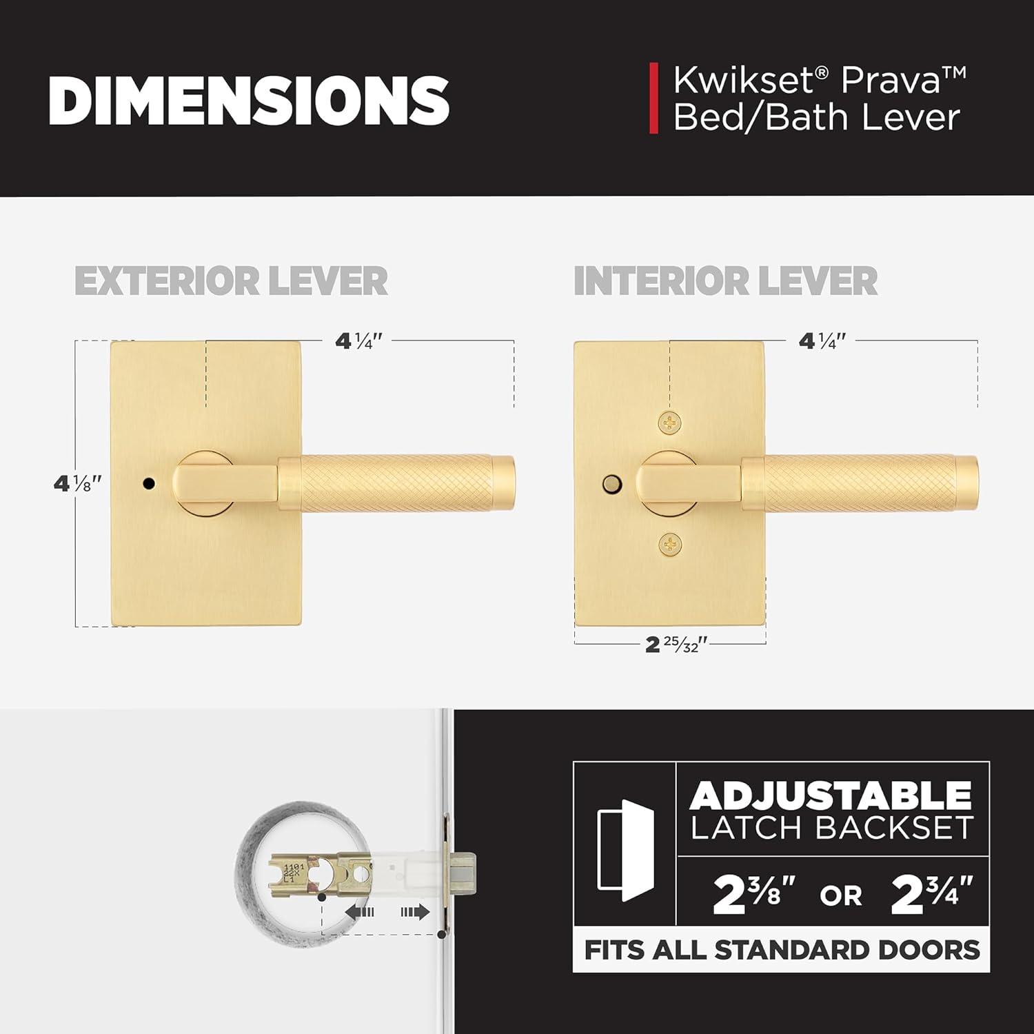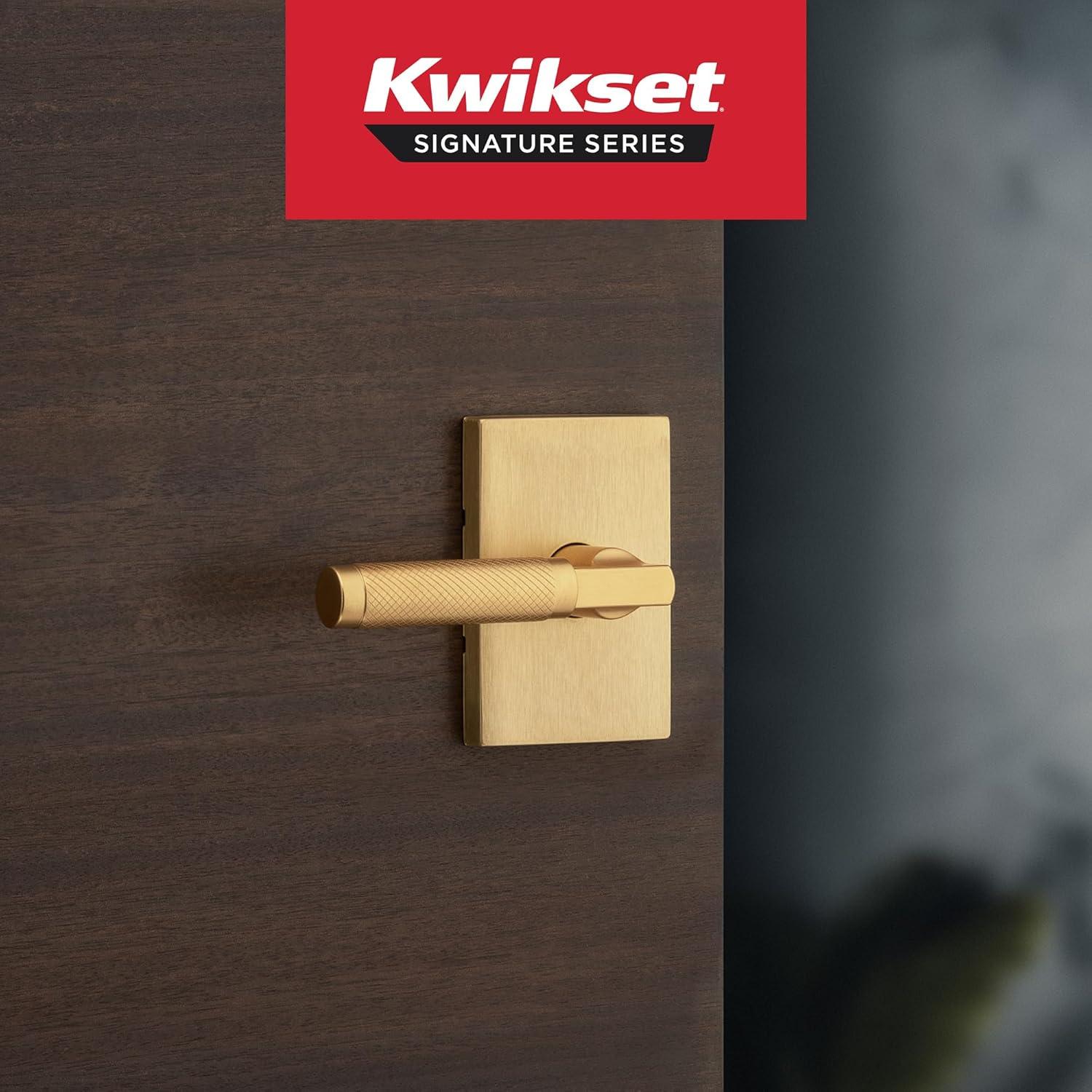 Step up to designer styles and superior security with Kwikset Signature Series products. Prava merges alluring aesthetics and trusted functionality. With intricate, decorative knurling, you can feel the Kwikset difference on each statement piece. Experience tactile luxury, contemporary style and elevated craftsmanship on every door. Both levers/knobs can be operated by a key on the outside or thumb turn on the inside. The textured finish of Satin Brass gives it a refined, rustic look.