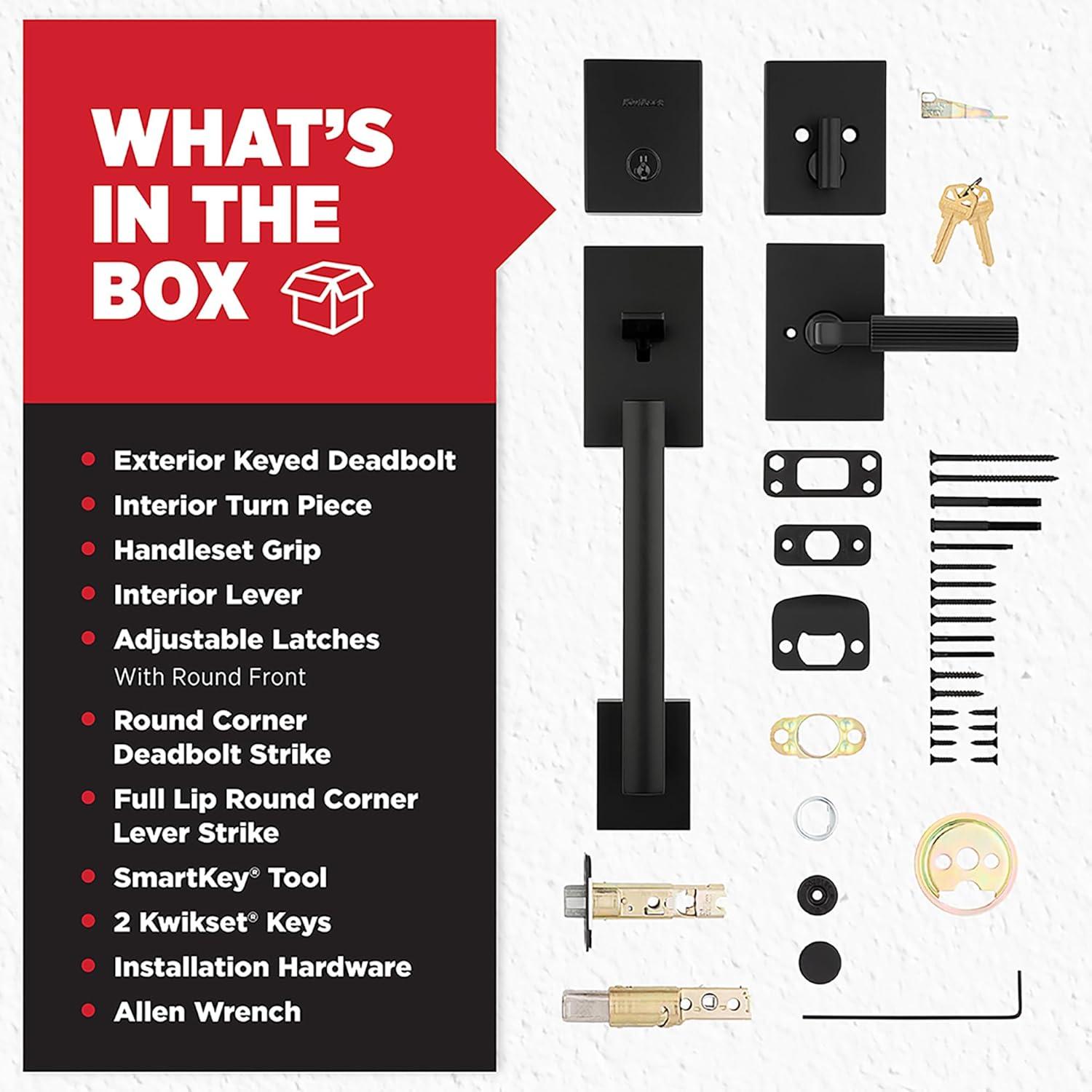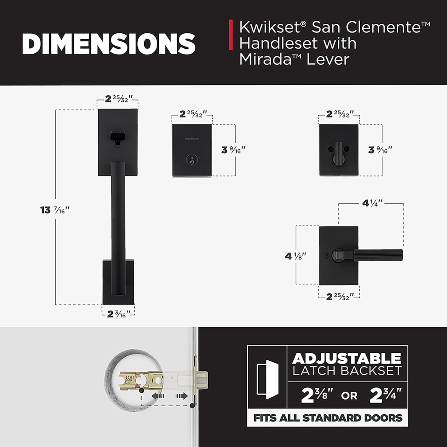 Kwikset San Clemente Front Door Lock Handle and Deadbolt Set, Entry Handleset with Mirada Reversible Lever, Matte Black, Pick Resistant SmartKey Rekey Deadbolt Security, with Microban Protection(Matte Black)