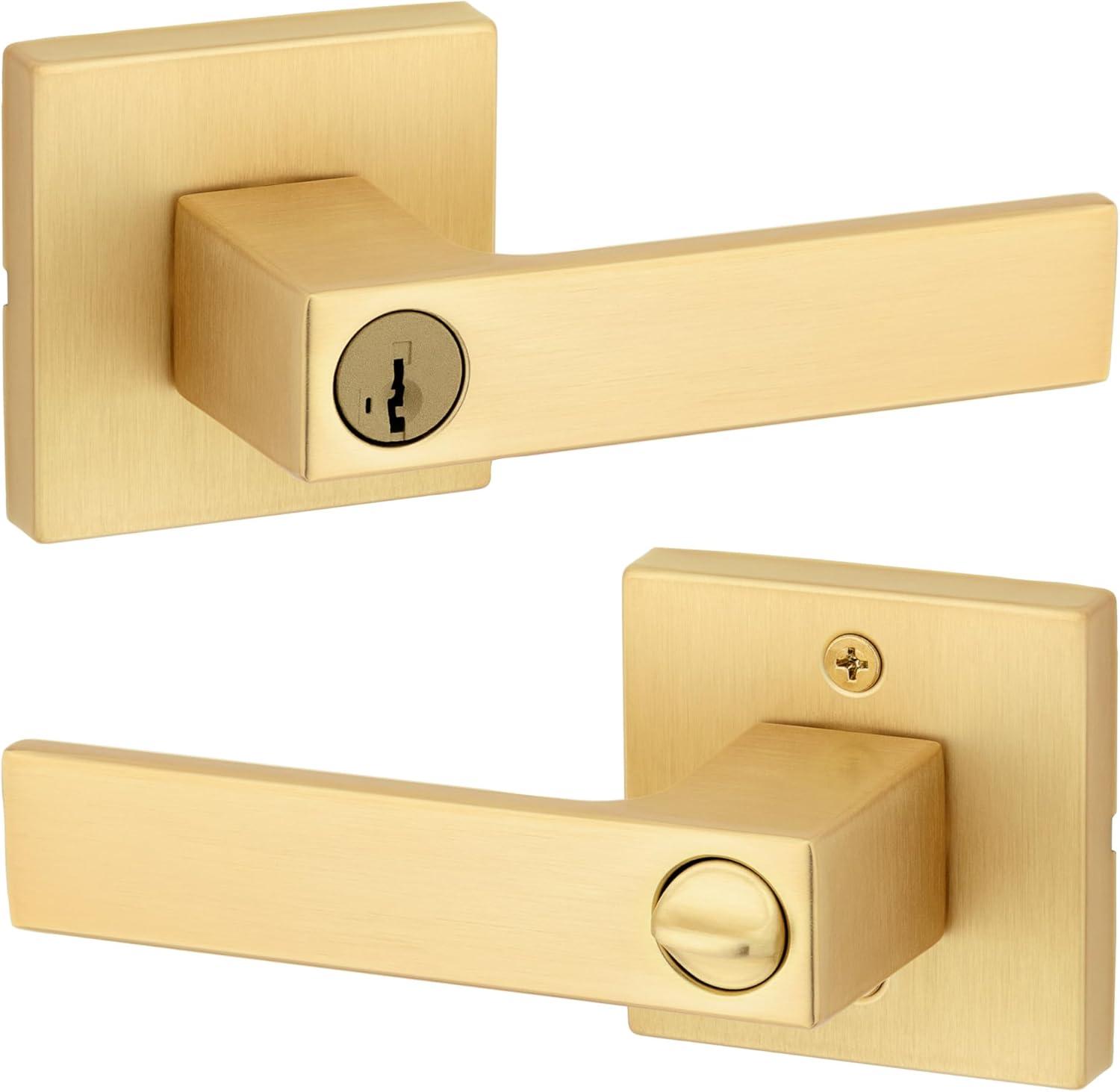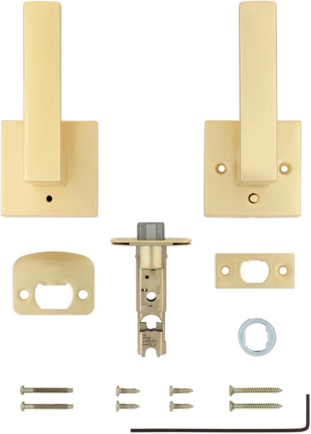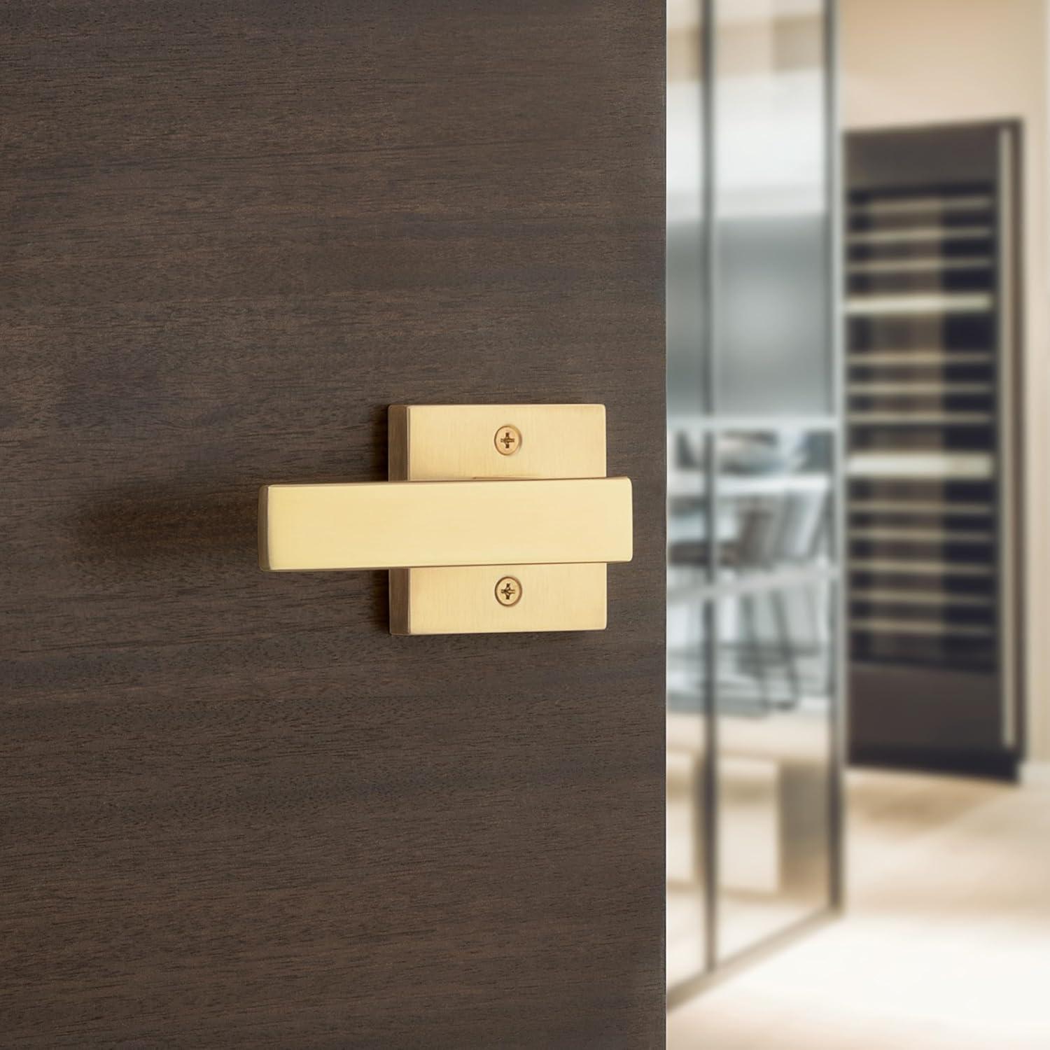 Kwikset Singapore Interior Privacy Door Handle with Lock, Door Lever For Bathroom and Bedroom, Matte Black Reversible Keyless Turn Lock, with Microban Protection(Satin Brass)