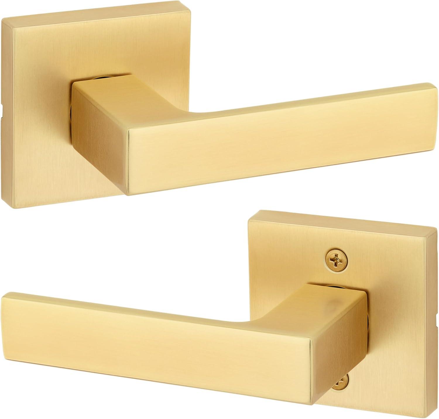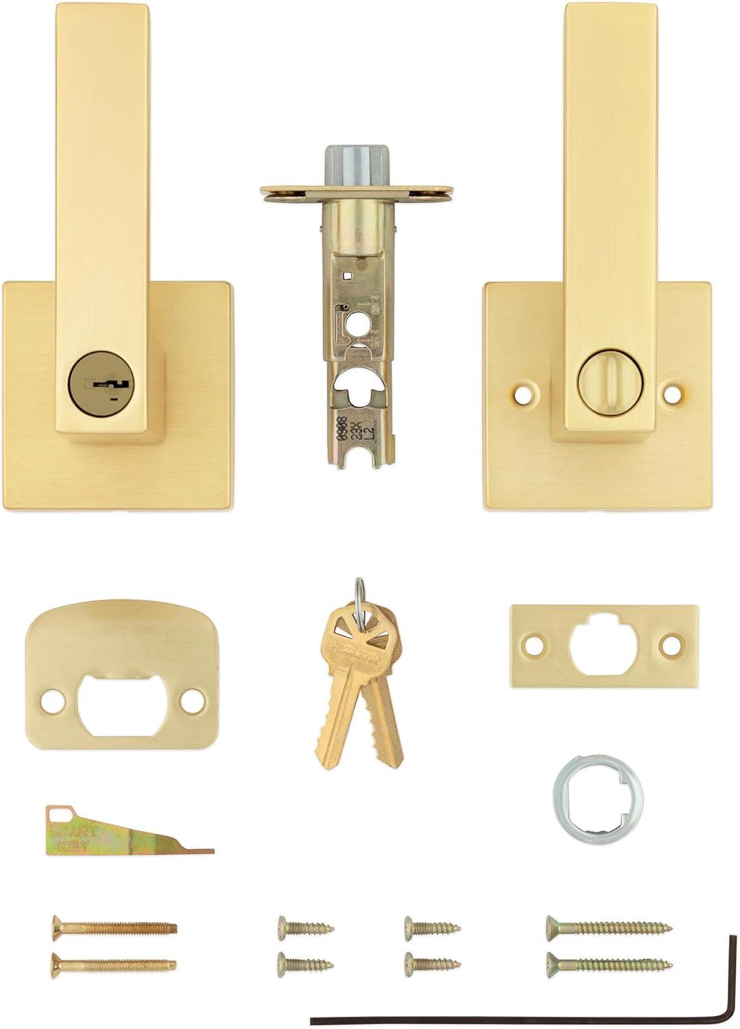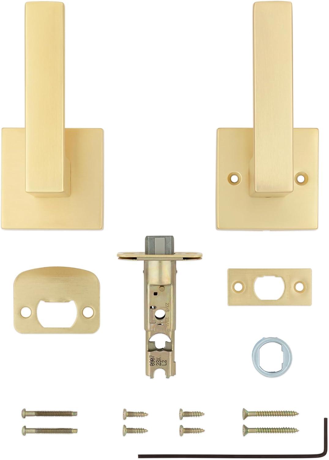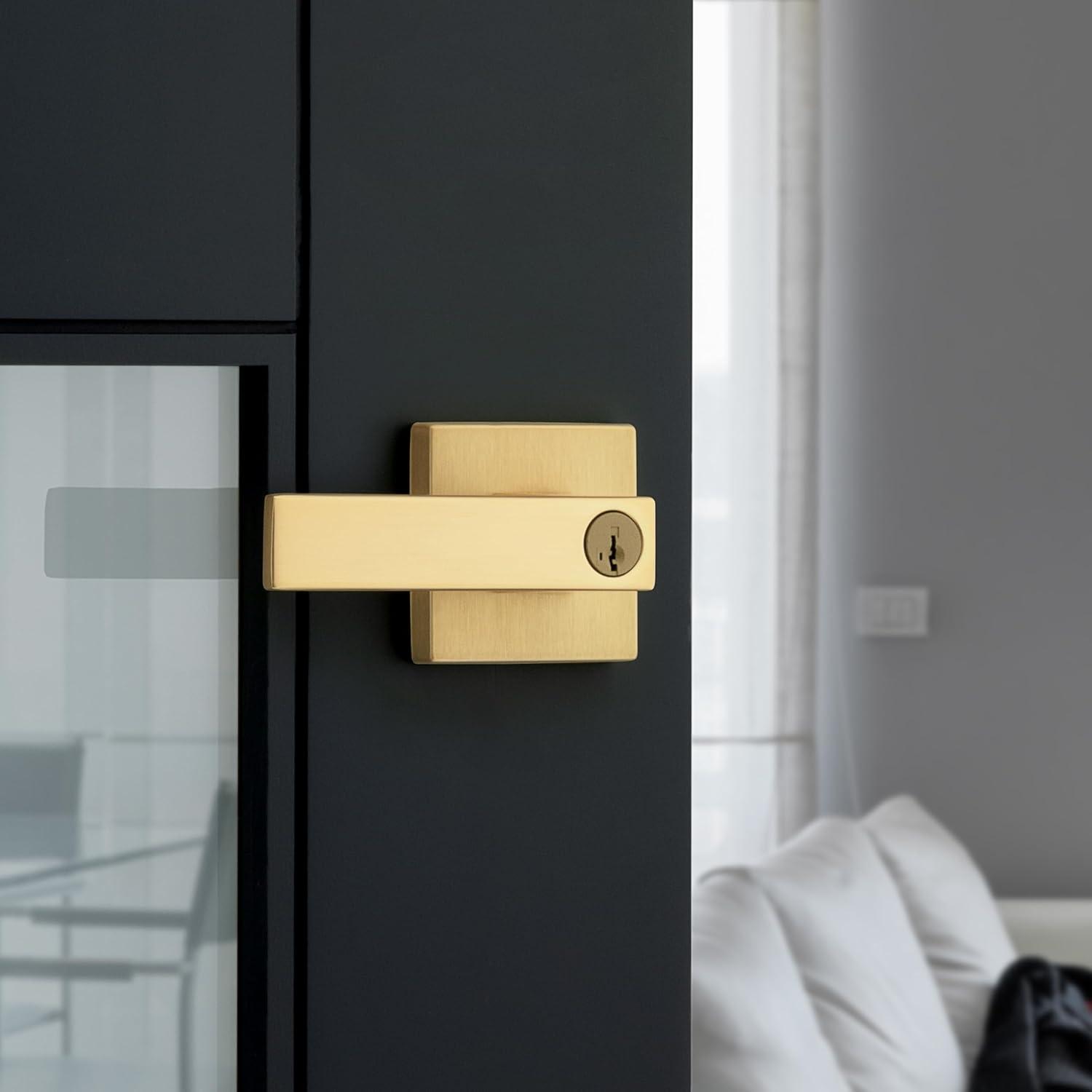 Kwikset Singapore Interior Privacy Door Handle with Lock, Door Lever For Bathroom and Bedroom, Matte Black Reversible Keyless Turn Lock, with Microban Protection(Satin Brass)