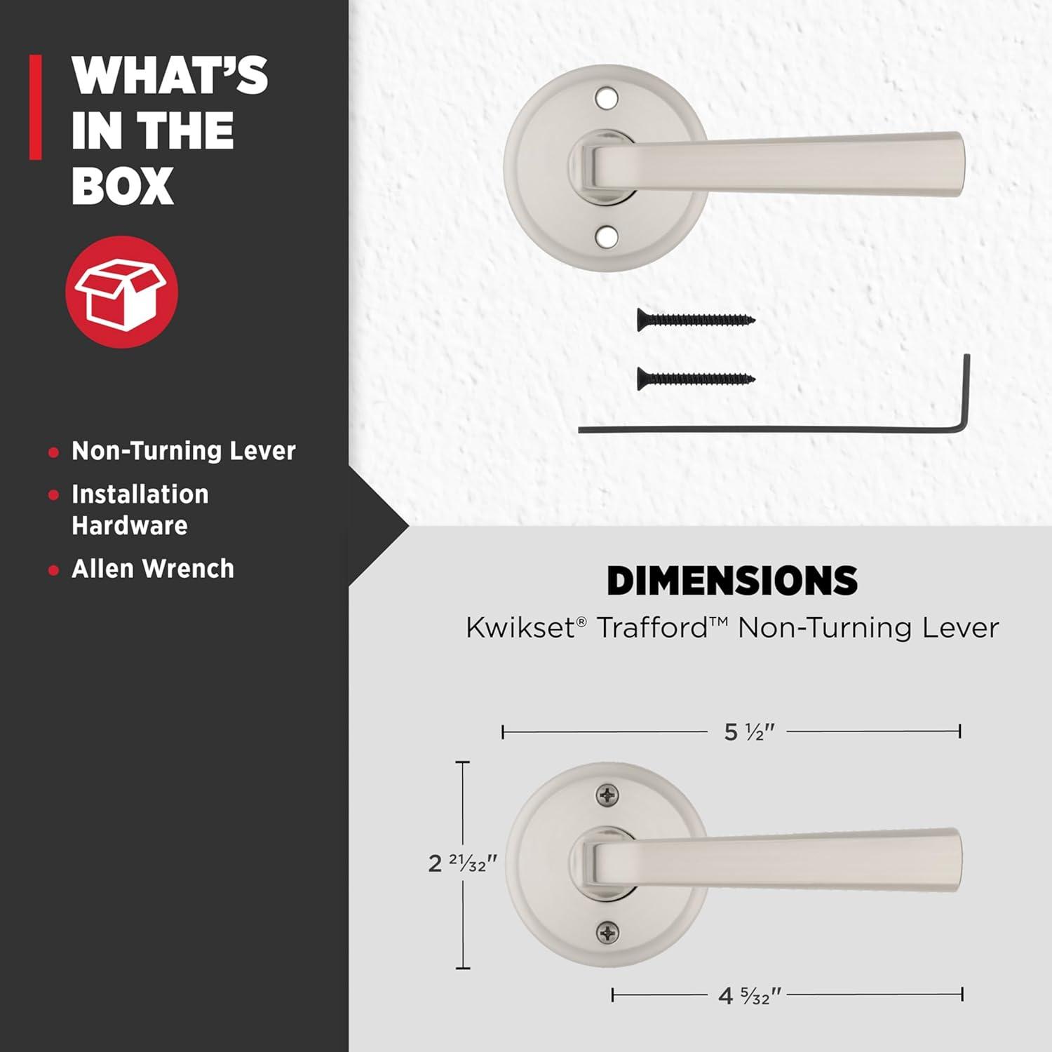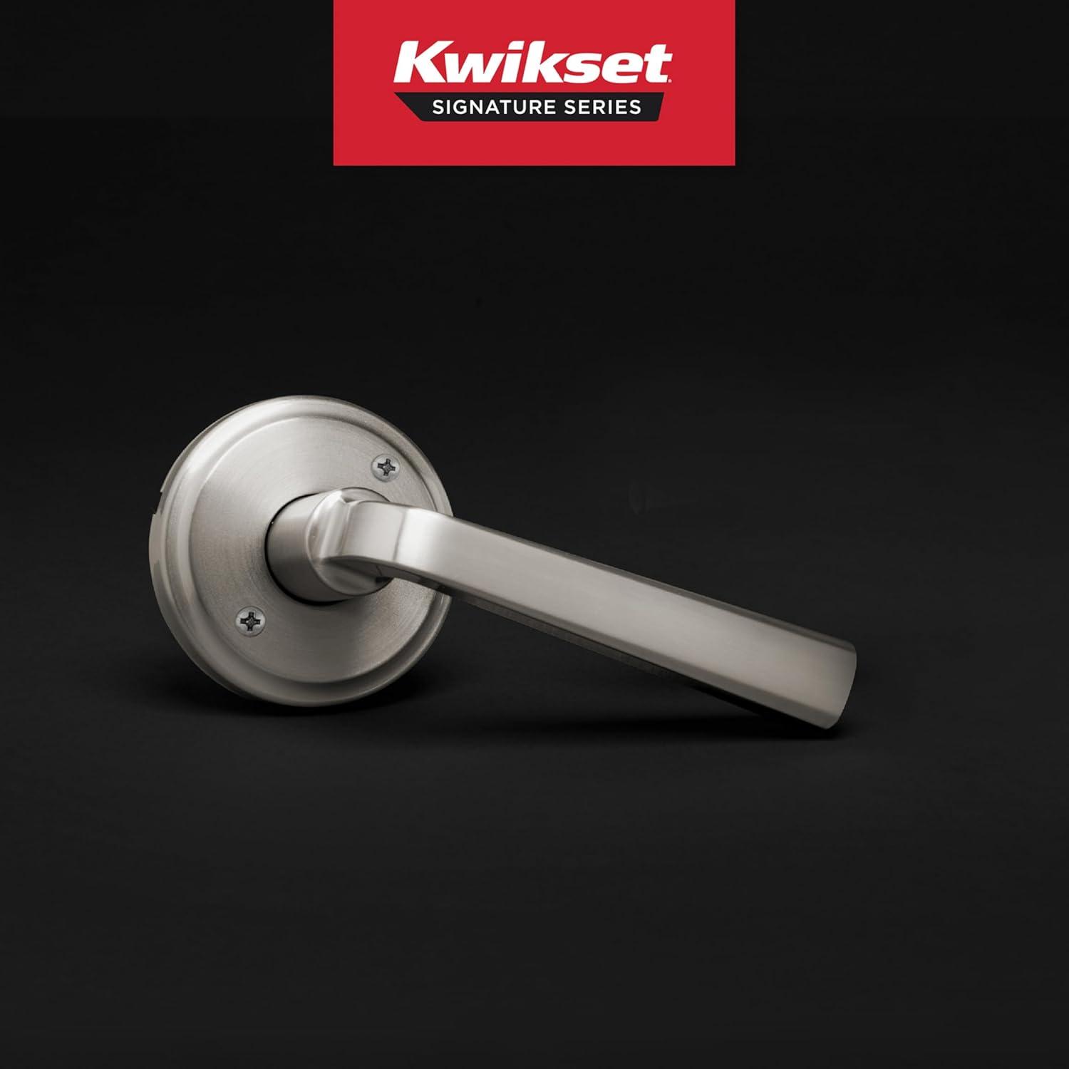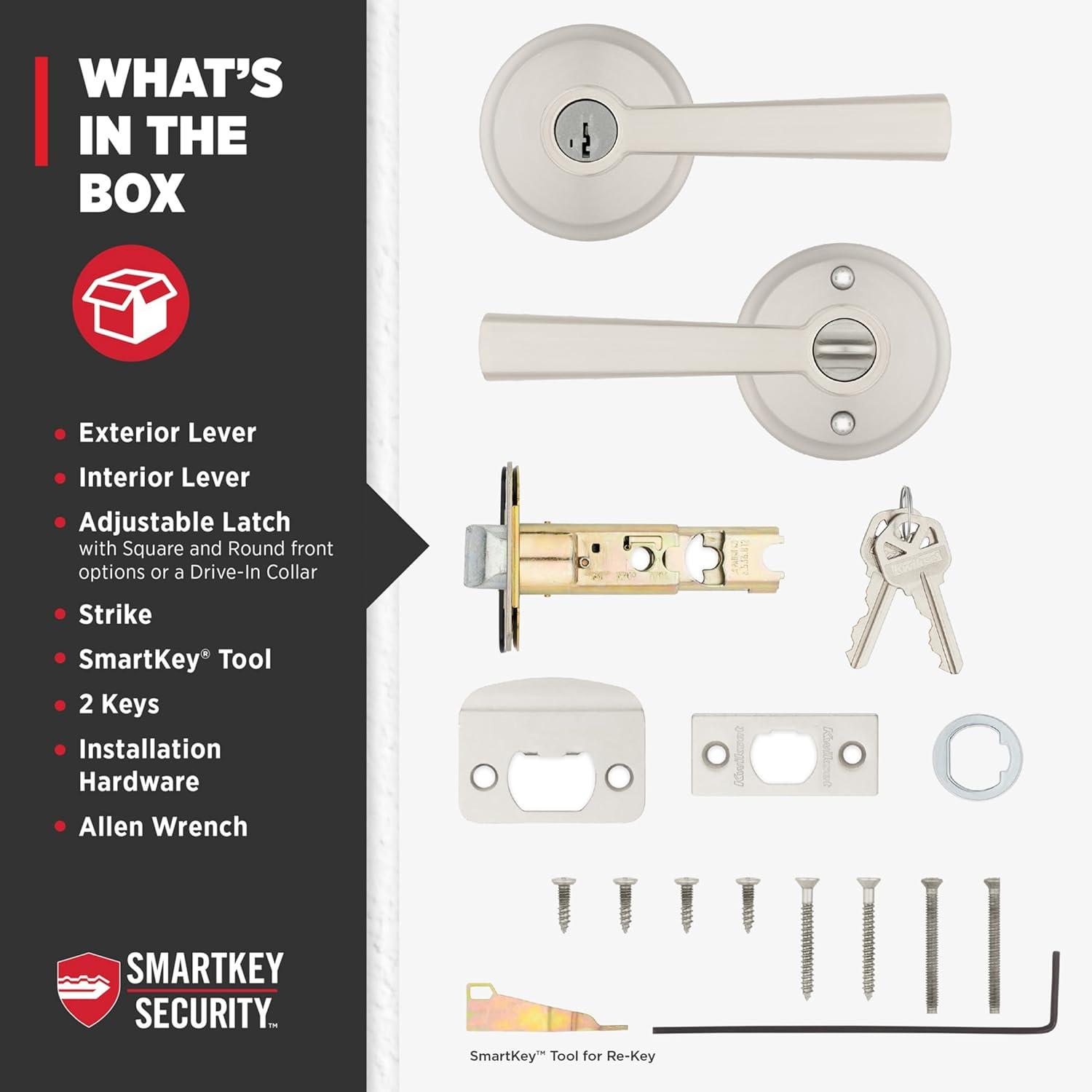 Kwikset Trafford Entry Door Handle with Lock and Key, Secure Keyed Reversible Lever Exterior, for Front Entrance and Bedrooms, Satin Nickel, Pick Resistant Smartkey Rekey Security and Microban(Satin Nickel)