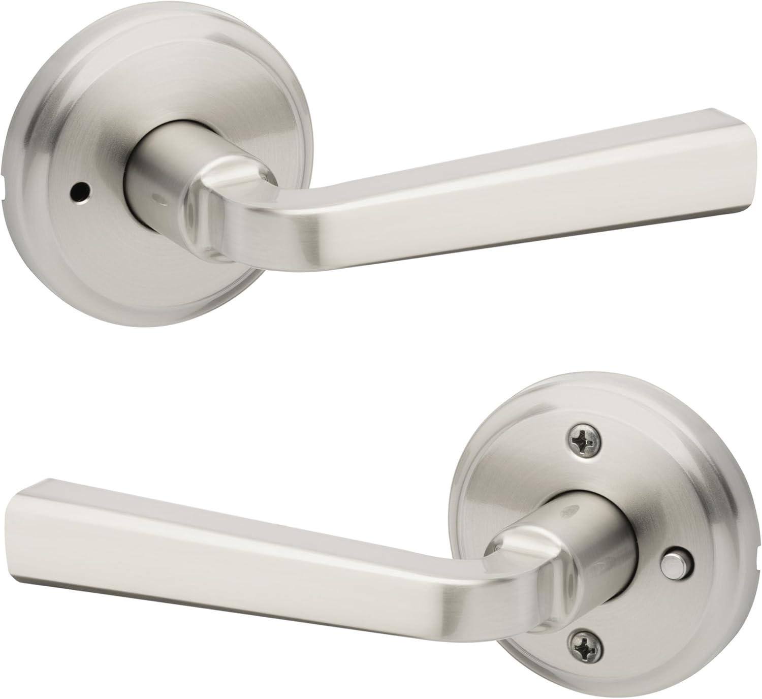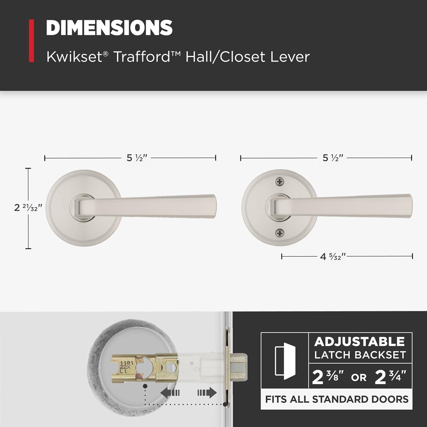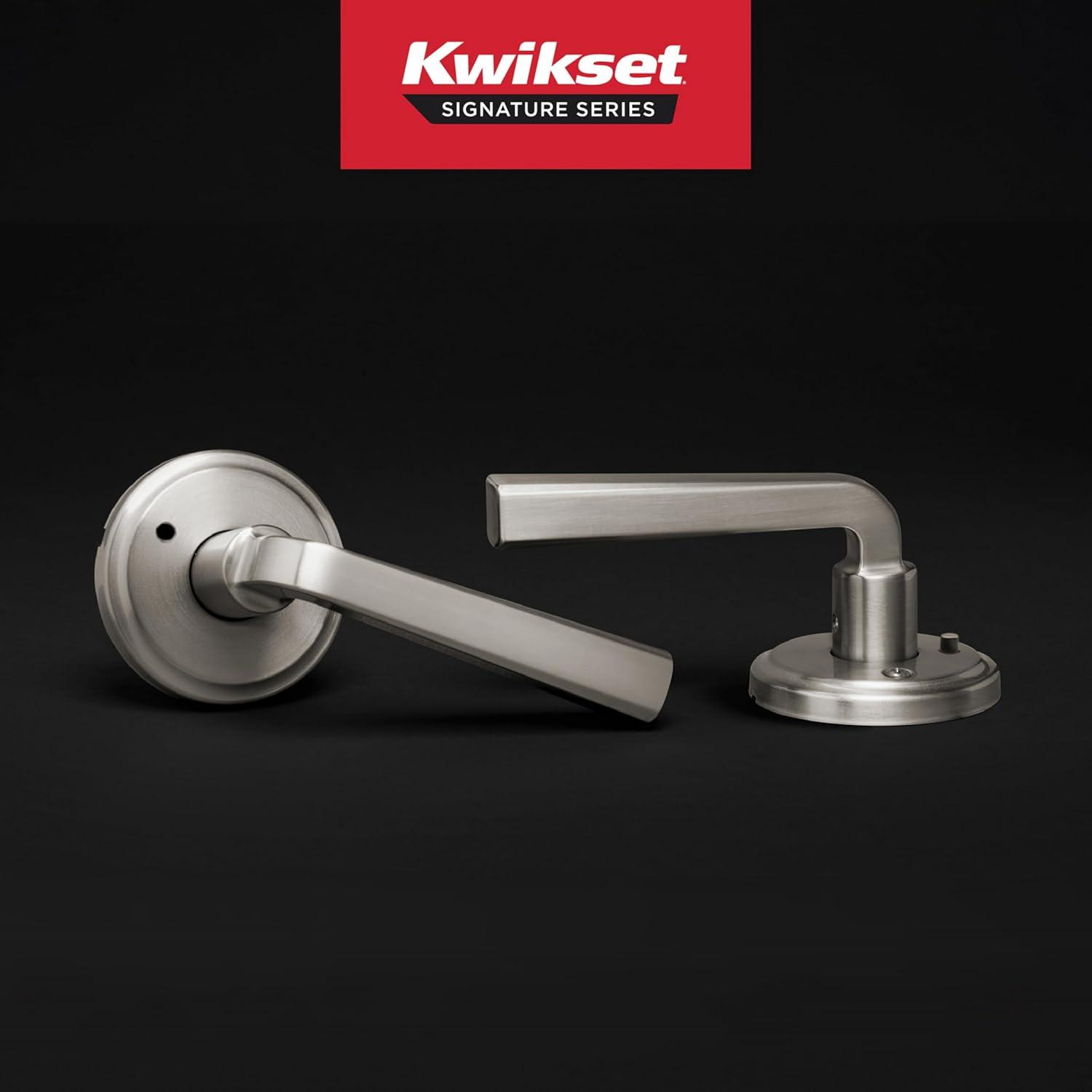 Kwikset Trafford Entry Door Handle with Lock and Key, Secure Keyed Reversible Lever Exterior, for Front Entrance and Bedrooms, Satin Nickel, Pick Resistant Smartkey Rekey Security and Microban(Satin Nickel)