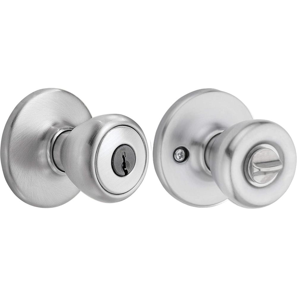 Kwikset Tylo Entry Door Knob with Lock and Key, Secure Keyed Handle Exterior Doorlock, Doorknob For Front Entrance and Bedrooms in Satin Chrome(Satin Chrome)